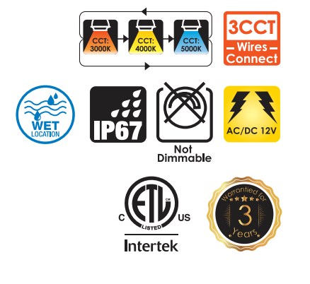 CCT: 3000K/4000K/5000K Adjustable
